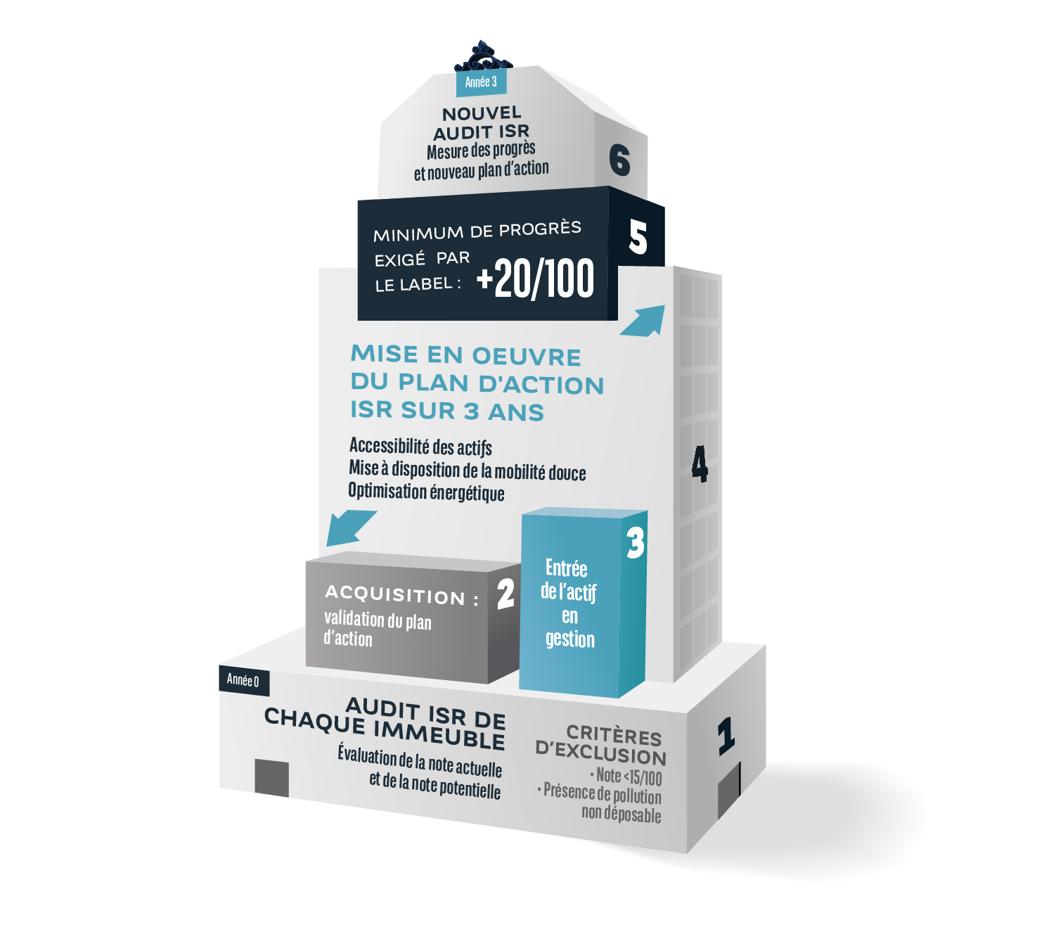 Pour y parvenir, BNP Paribas REIM a en effet adopté une grille d’analyse ESG et a choisi une démarche ISR « best-in-progress », démarche qui vise à améliorer dans le temps les performances ESG des actifs existants. La SCPI Accès Valeur Pierre s’est ainsi dotée d’une méthodologie engageante afin d’améliorer la gestion des actifs détenus et de renforcer leur qualité et leur résilience, lui permettant d’obtenir ainsi le label ISR.