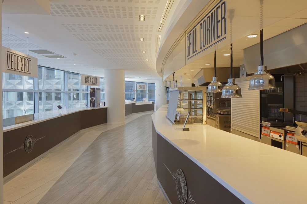 Enfin, le goût n’est pas oublié dans ce voyage grâce à une offre de restauration complète et qualitative, qui complète le break room du 31ème étage. Un work café situé juste en face de l’accueil propose des boissons chaudes et froides, des smoothies des gâteaux ou des salades de fruits, disponibles également en commande room service. Un restaurant d’entreprise de 545 places est également installé au 2ème étage. Les plats sont essentiellement préparés avec des produits frais et bios et les pâtisseries sont réalisées sur place par un chef pâtissier.
