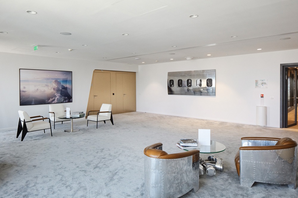 Le voyage serviciel du 31ème étage commence avec le lounge, un espace chaleureux, élégant et à la touche décorative exceptionnelle et unique agrémenté d’une fresque murale géante, graphique et cristalline, sur le thème de l’aviation. Avec cette œuvre, le deux artistes Alexandre Orvain et Marine Montagnier souhaitent harmoniser la rigidité mécanique de l'univers de l'aéronautique avec la souplesse et la légèreté des nuages. Mais le lounge est avant tout un espace multi-usages qui peut accueillir aussi bien réunions de travail, échanges informels que des moments de pause et de convivialité, et ce, avec une vue imprenable sur Paris et La Défense. Cœur battant de la tour, il est ouvert à tous les collaborateurs et il permet de bénéficier d’une vitrine exceptionnelle pour recevoir ses clients dans les meilleures conditions dans un espace véritablement « business-oriented ». Il est également entièrement privatisable sur demande et peut accueillir des évènements jusqu’à 150 personnes.