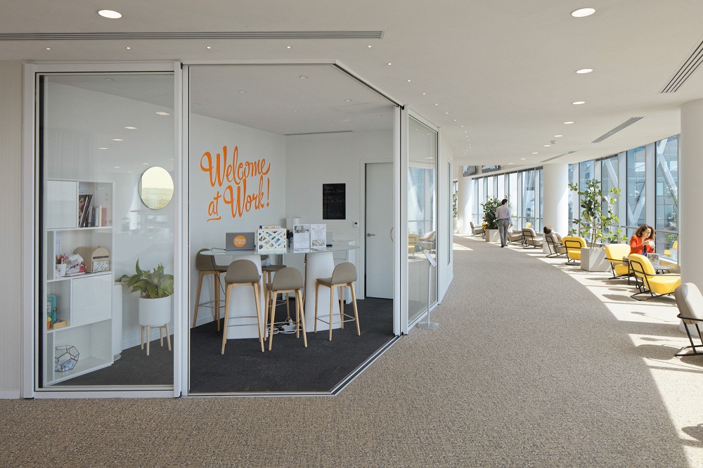 D’un point de vue visuel, l’architecture d’intérieur a été largement revue. Le mobilier du lobby par exemple a été changé pour apporter plus de couleurs et d’harmonie dès l’entrée des utilisateurs dans la tour. Un effort de végétalisation a été fait sur cet espace pour amener un côté zen et apaisant. Dans le hall également, une part belle est faite à la peinture grâce à une exposition d’œuvres d’art numériques. Celle-ci est renouvelée tous les mois.