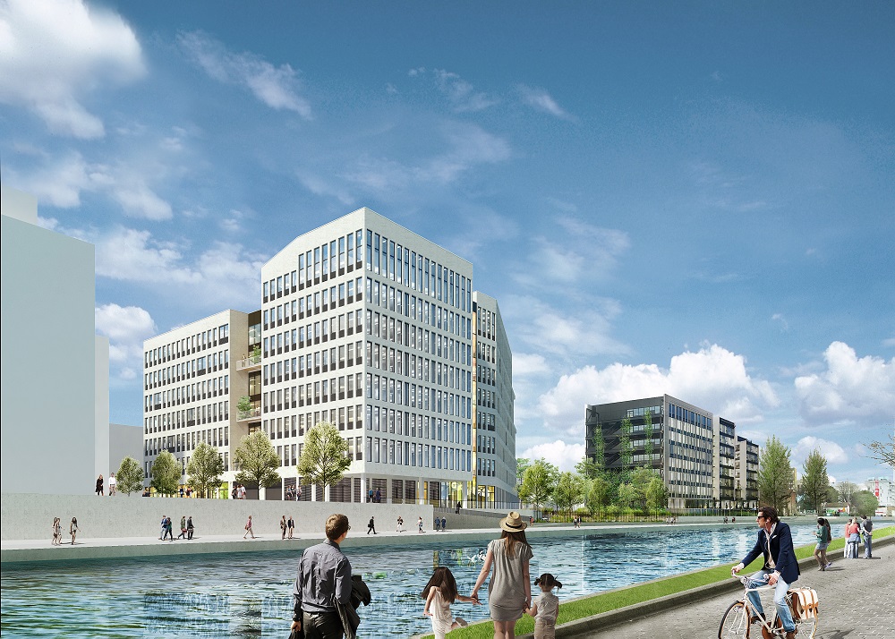 Enfin, la part belle est faite à la nature dans ce projet immobilier, s’exprimant au travers d’un programme paysager de 3.170 m² d’espaces végétalisés dont 700 m² de jardin. Près de 2.500 m² de terrasses et balcons sont également répartis entre tous les étages avec une vue surplombant le canal ; un vrai cadre de travail privilégié apportant sérénité et bien-être aux collaborateurs.
