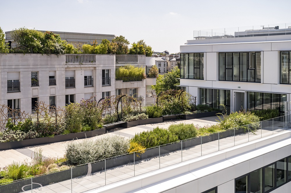 - Confort optimal des espaces de travail ; mesures en temps quasi réel de la qualité de l’air, de la luminosité, de la température et de l’acoustique avec le Kandumètre by Ecume par Saint-Gobain grâce à plusieurs indicateurs et une GTB qui permet d’appliquer des rectificatifs au besoin ; un patio végétalisé de 670 m² et des terrasses privatives de 500 m² aux R+4 et R+5, répondent au besoin de respiration.