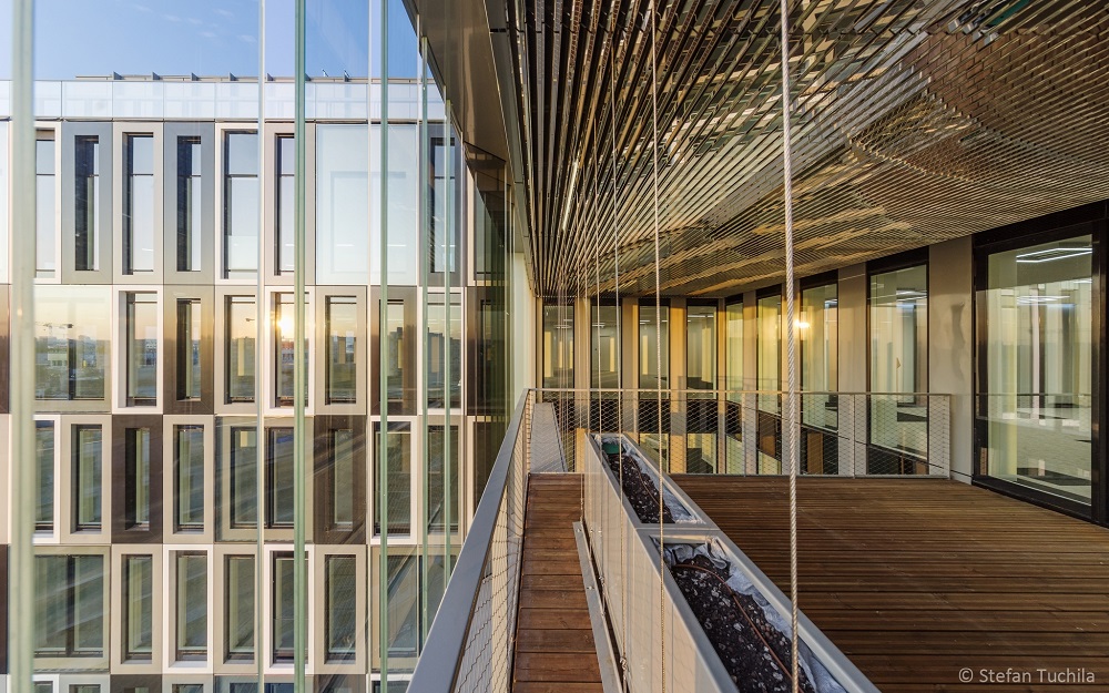 Avec plus de 1 200 m² d’espaces extérieurs végétalisés mis à disposition des employés, NETWORK 1 fait la part belle à l’écologie. Les collaborateurs peuvent ainsi profiter des agréments des loggias en étages et de ses deux terrasses en rooftop.
