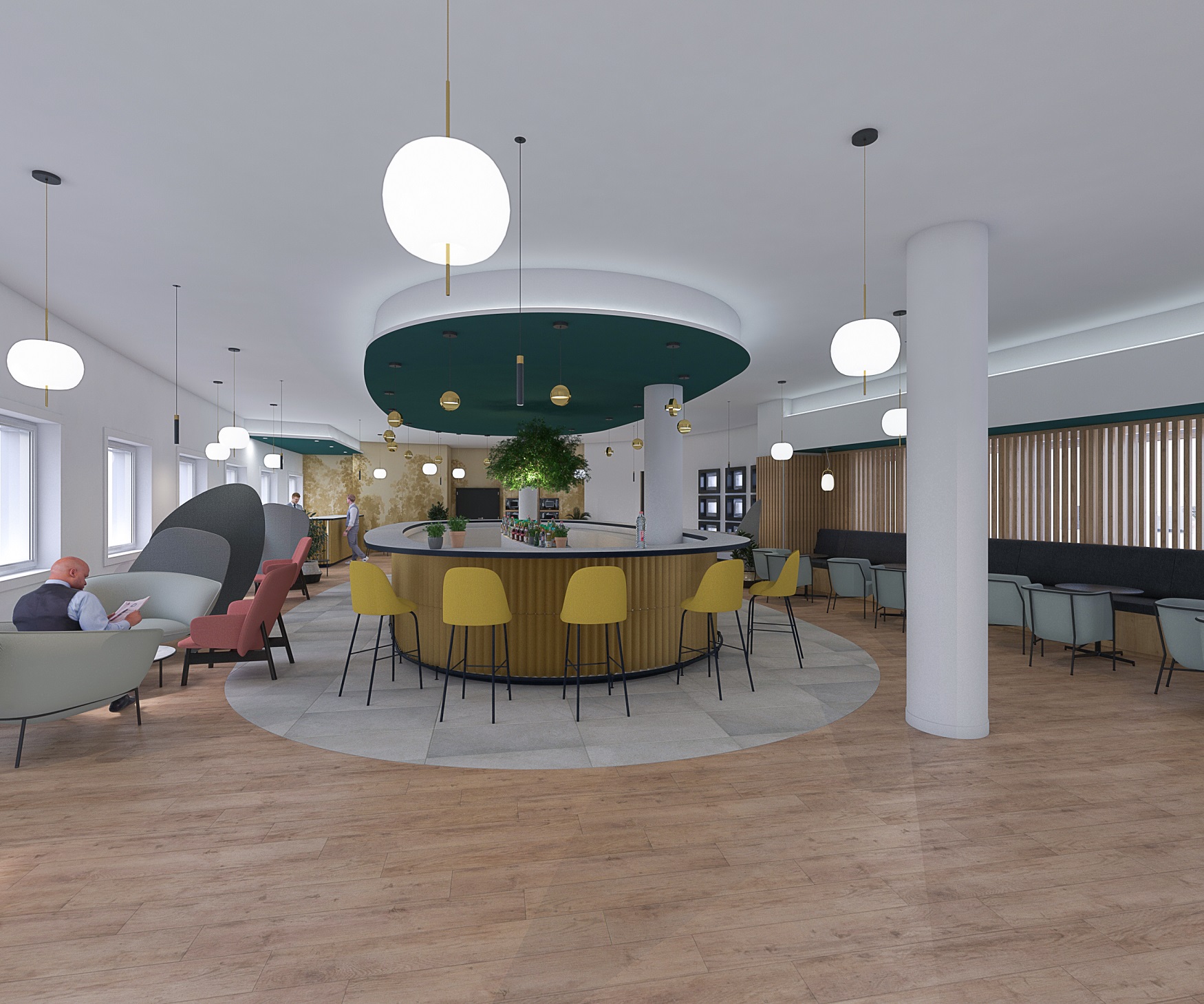 C’est après de longs mois de réflexion pour allier lieu de travail et lieu de vie et des études techniques poussées pour répondre aux exigences de la réglementation IGH, que des travaux de rénovation de l’étage menés par l’agence de design Tétris ont débuté au début de l’année 2021. Ils viennent tout juste de s’achever et le résultat est à la hauteur des espérances. D’un point de vue architectural, ce 24ème étage auparavant méconnu des locataires a revêtu ses habits de lumière pour devenir chaleureux, convivial et animé. Bien plus qu’un mobilier haut de gamme et cosy, le parcours utilisateur a été pensé sur chaque m² pour que le locataire puisse en prendre possession à tout moment de la journée. La décoration raffinée transforme l’étage en le positionnant plus seulement comme un lieu de travail, mais aussi comme un lieu exclusif dont seuls les locataires de la Tour peuvent bénéficier, pour plus de bien-être et de sérénité. Et c’est dans cette optique que toute l’offre servicielle de l’étage a été revue pour apporter de la fonctionnalité au moindre petit mètre carré exploité. Naviguer de zone en zone au 24ème étage permet ainsi de passer d’un service à un autre et ce sur près de 1.000 mètres carrés.
