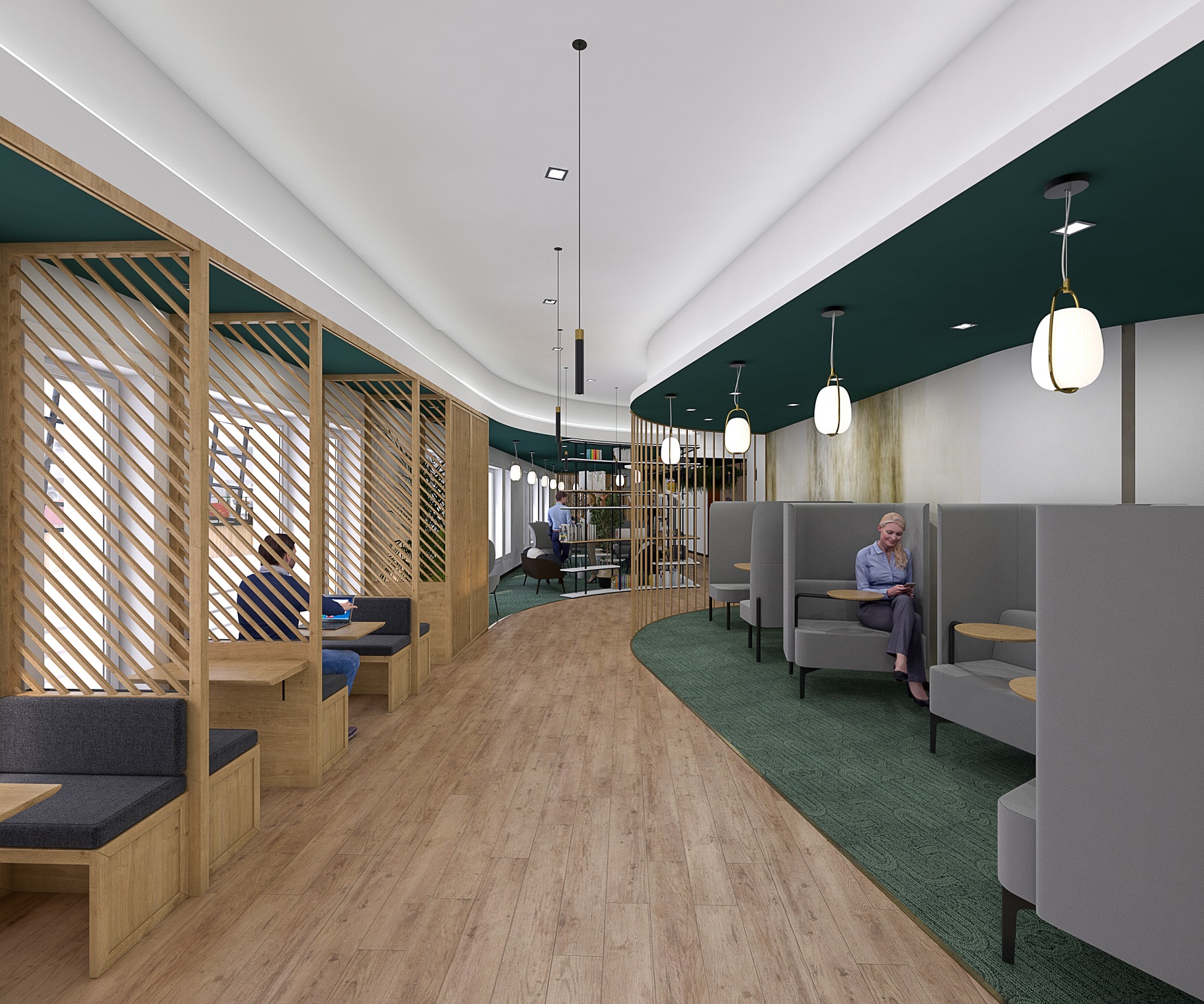 Le projet est allé encore plus loin en proposant de multiples lieux de travail en coworking idéaux pour une immersion en mode projet. Dans un cadre différent de l’open-space et dans le confort nécessaire à la concentration et la créativité, ces espaces ont été conçus pour permettre de travailler « mieux » autrement. Chaque utilisateur de la tour qui le souhaite peut y aller en flex office pour brancher son ordinateur, passer un coup de fil ou avoir un point informel autour d’un café.