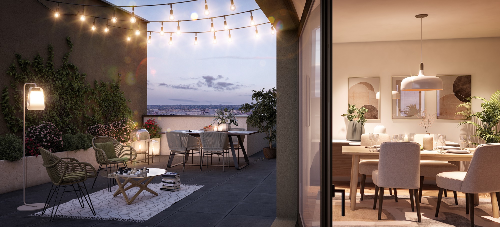 Révélatrice de la qualité des matériaux et des finitions haut de gamme, la lumière semble irradier l’ensemble des pièces et infuser un sentiment de bien-être. Si certains logements possèdent une double orientation, tous bénéficient d’une belle luminosité et d’ouvertures généreuses, tandis que des loggias, terrasses ou balcons viennent compléter une majorité d’appartements. Des espaces de vie extérieurs idéals pour passer des moments inoubliables entre amis ou en famille…