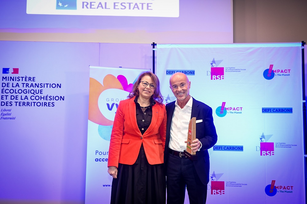 Pour la 12ème fois consécutive, la cérémonie de remise des Trophées Défis RSE, qui s’est tenue cette année ce mercredi 6 décembre 2023 au ministère de la transition écologique et de la cohésion des territoires, a récompensé les entreprises les plus engagées en matière de responsabilité sociétale et environnementale dans différentes catégories, comme les trophées santé, environnement ou encore Capital Humain RH. En parallèle s’est tenue pour la première fois la remise d’un tout nouveau prix, le Trophée Défi Carbone, que BNP Paribas Real Estate a reçu dans la catégorie Grande Entreprise.